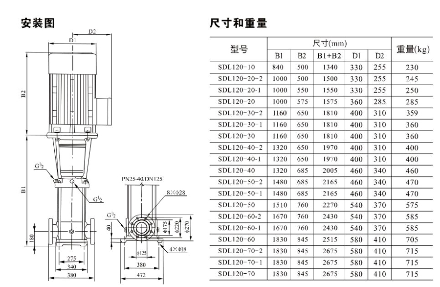 SDL120/SDLT120立式多級離心泵其管道式結(jié)構(gòu)可以確保泵可直接安裝在進(jìn)出在同一水平線上且管徑相同的水平管路系統(tǒng)中,這種設(shè)計(jì)使泵的結(jié)構(gòu)和管路更為緊湊。