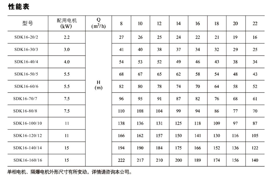 SDK16/SDKT16為配用標準電機的非自吸立式多級離心泵,電機軸和泵軸用聯軸器直接聯接的結構。為滿足水槽或容器的安裝深度,可安裝空套的腔體來改變泵本身的侵入 深度。